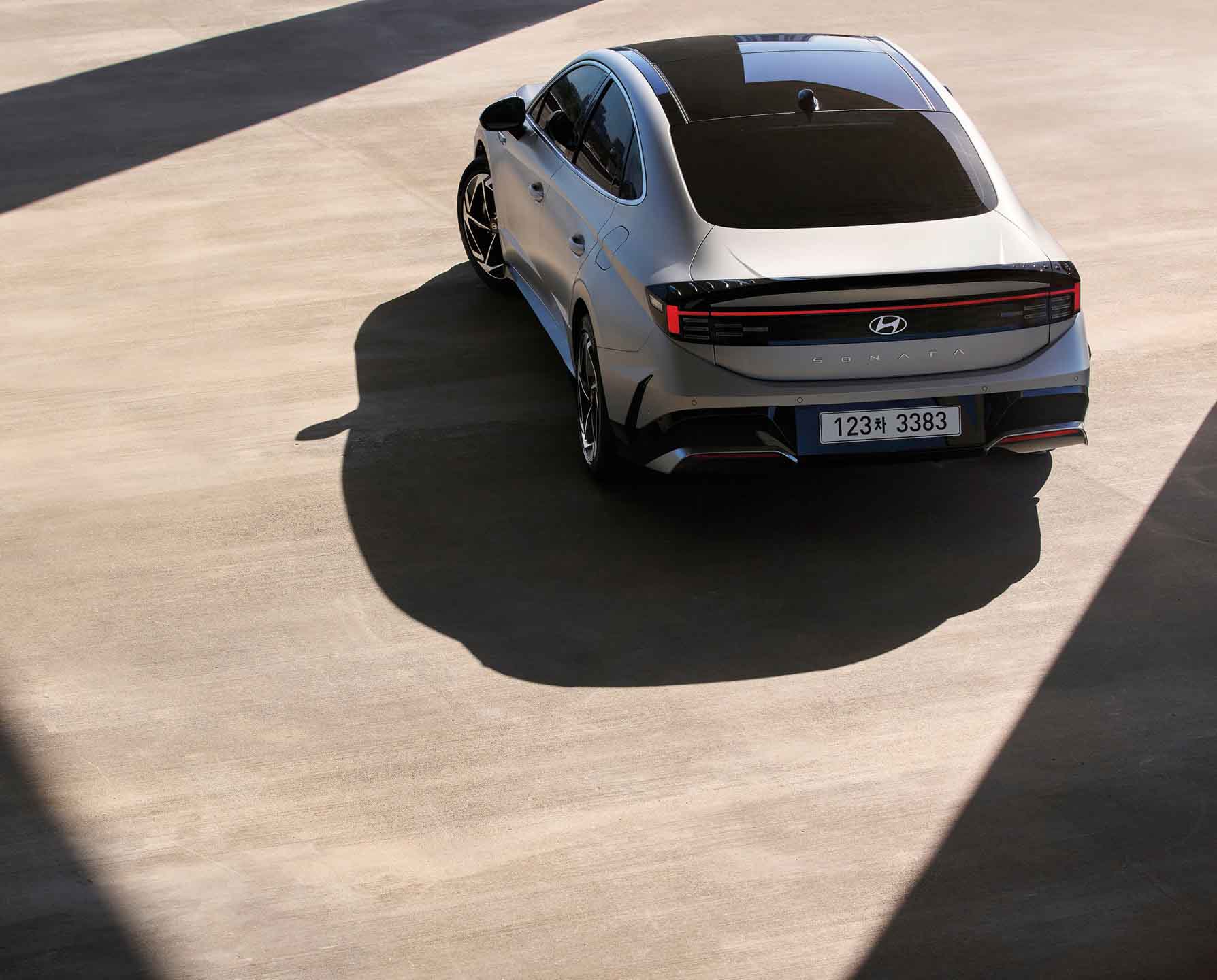 대체로 낮은 높이의 후드에서 루프 라인으로 이어지는 쿠페형 디자인은 기존의 쏘나타 모델과는 다른 스포티한 이미지를 보여주는데요, 특히 현대자동차의 시그니처 라이트 디자인인 심리스 호라이즌 램프는 2024 쏘나타 디 엣지의 과감한 스타일을 대변해 줍니다.