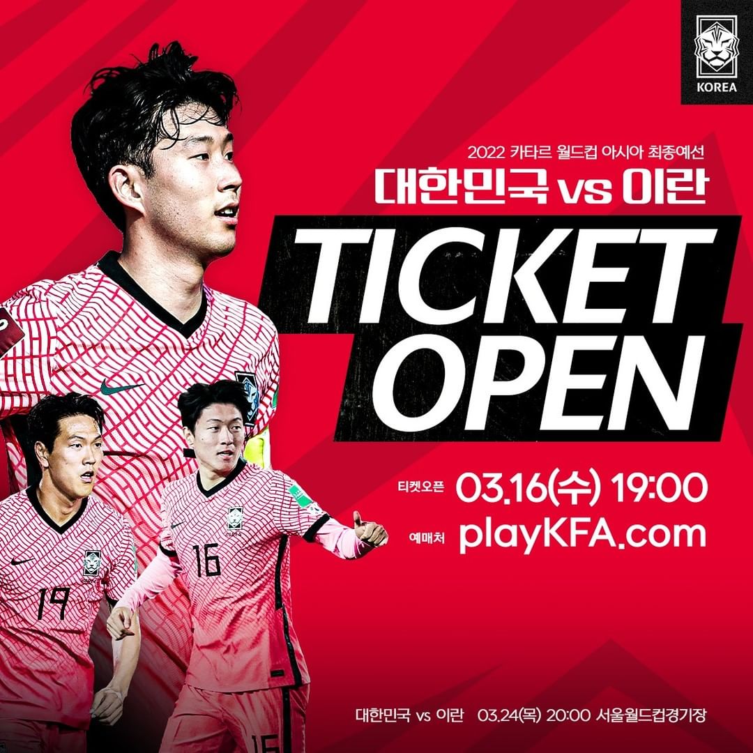 저 역시 3월 16일 티켓팅에 꼭 성공해서 오랜만에 축구 직관을 갈 예정인데요, 이미 월드컵 본선행을 확정 지었지만 아시아 숙명의 라이벌인 이란을 꼭 이겨서 조 1위로 기분 좋게 월드컵까지 갈 수 있었으면 좋겠습니다.