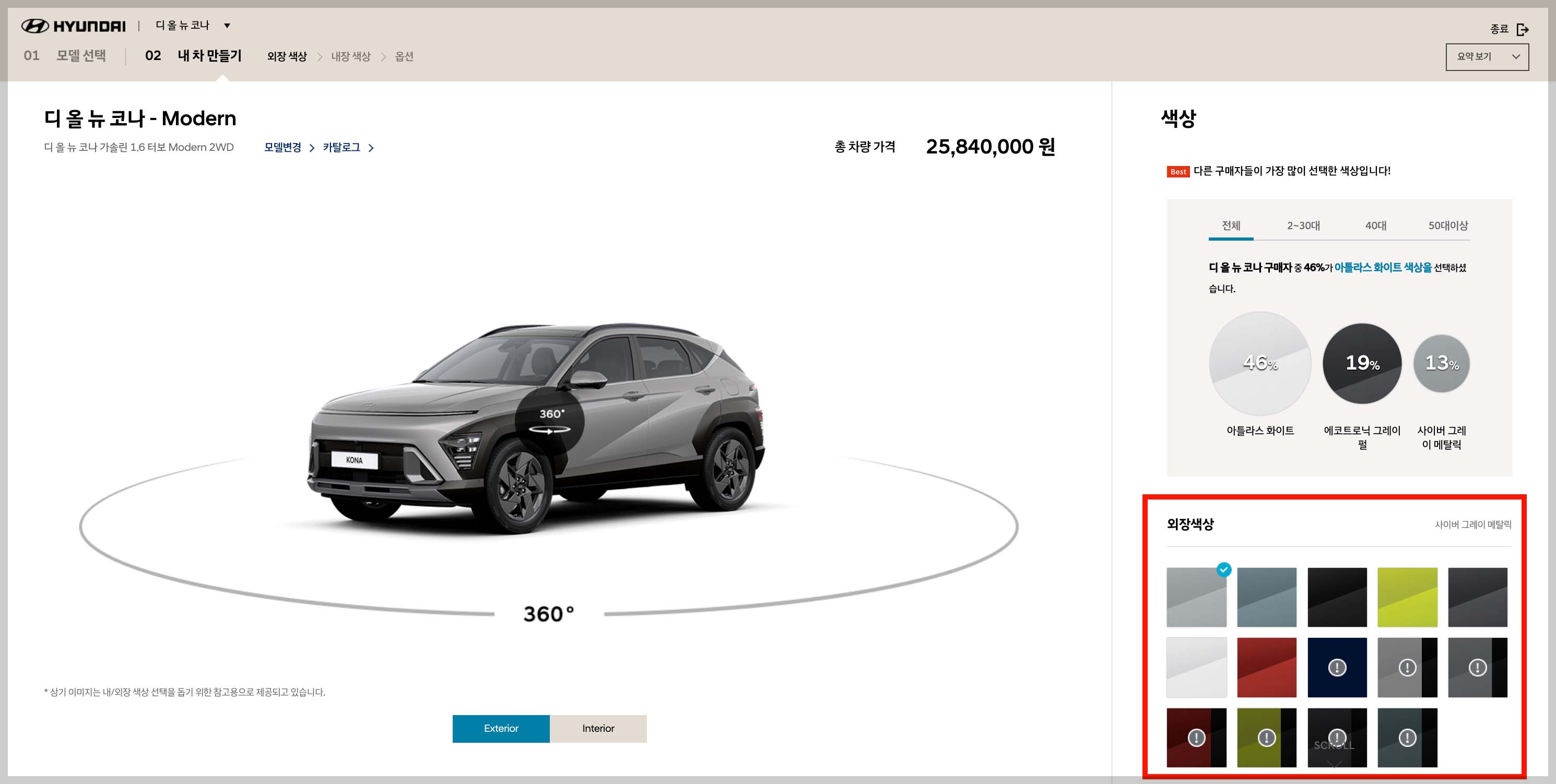 모델 선택 ▶ 외장 및 내장 색상 선택 ▶ 옵션 및 액세서리 선택 ▶ 상세 견적 만들기 ▶ 구매 신청하기