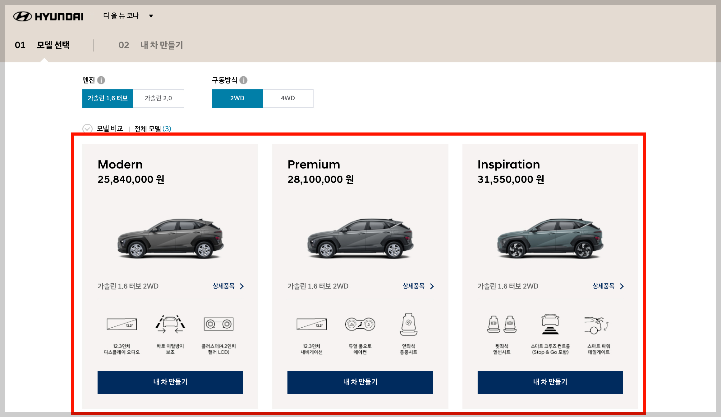 2023 코나 일렉트릭 모의견적 순서