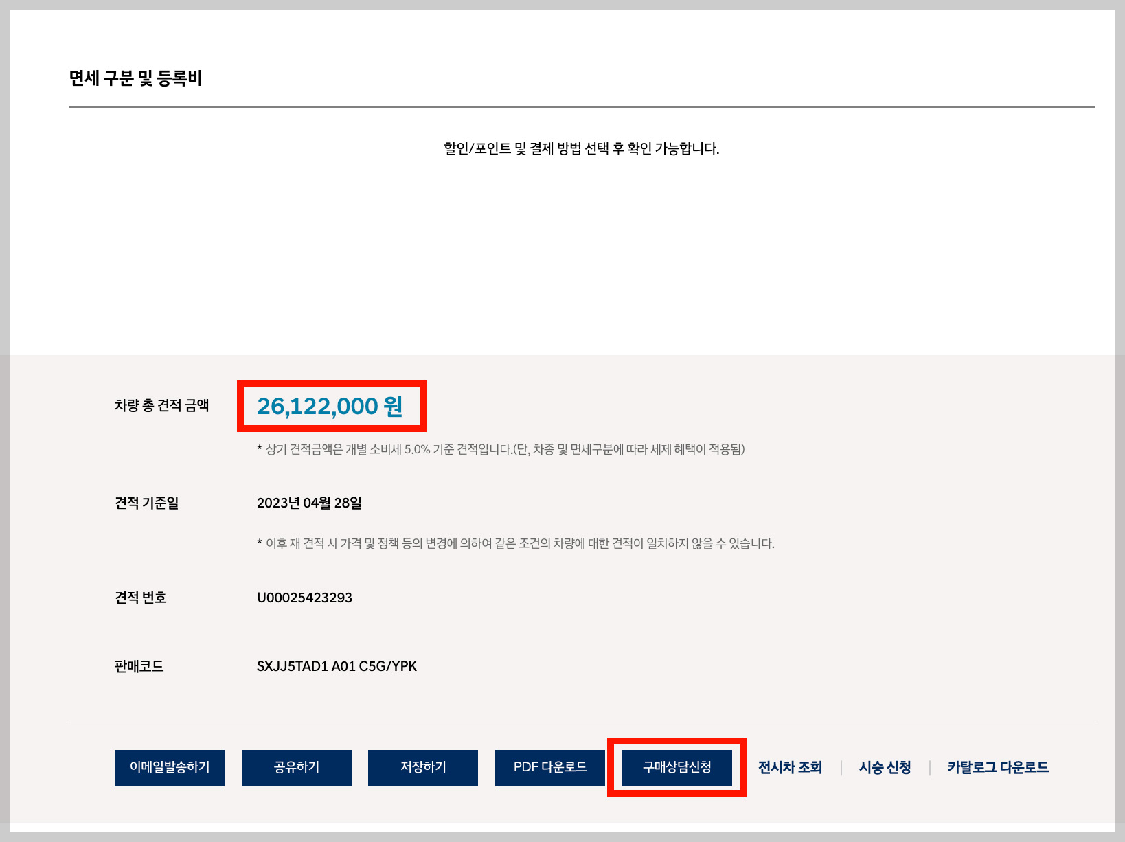 | 개별소비세 3.5% 적용 시 49,682,160원 |