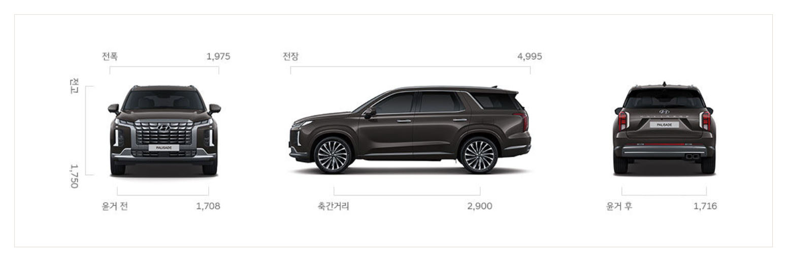 | 2024 현대 팰리세이드 치수 제원 | |