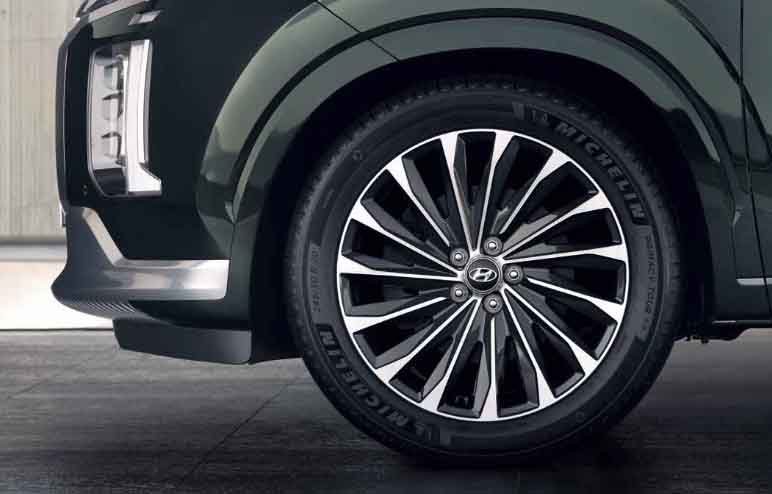 2024 현대 팰리세이드의 알로이 휠은 총 네 가지 버전으로 구성할 수 있는데요, 20인치의 캘리그래피 블랙 에디션 전용, 일반 캘리그래피 전용, 일반용, 그리고 18인치 알로이 휠이 있습니다.