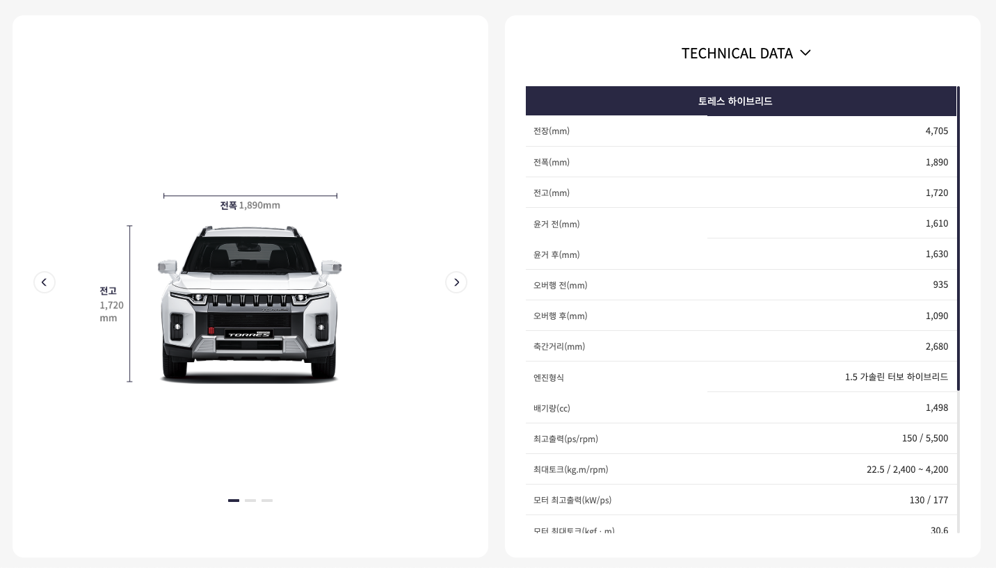 이번 포스팅에서는 2025 토레스 하이브리드 가격표, 제원, 연비, 출고기간 등 구매를 고려하는 분들이 꼭 알아야 할 정보를 정리해보겠습니다.